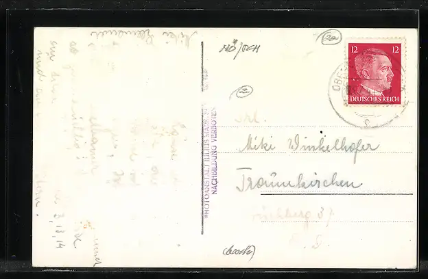 alte Ansichtskarte, gelaufen 1944, rückseitig Oberflächenschaden, guter Zustand