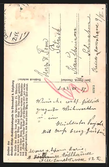 alte Ansichtskarte, gelaufen 1937, Briefmarke entfernt, guter Zustand