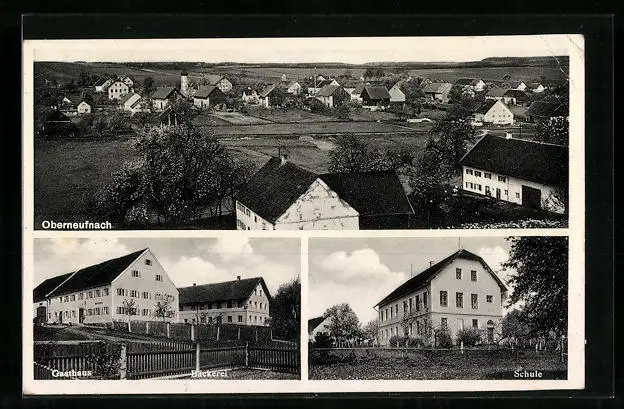 AK Oberneufnach, Ortsansicht, Gasthaus, Bäckerei, Schule
