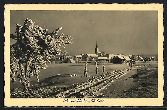 AK Oberneukirchen /Ob.-Oest., Blick zum verschneiten Ort
