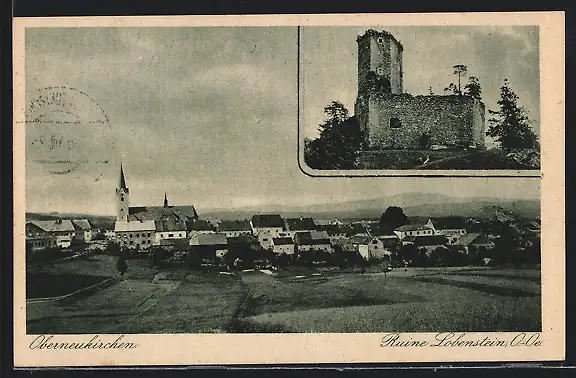 AK Oberneukirchen, Ruine Lobenstein, Panorama mit Kirche
