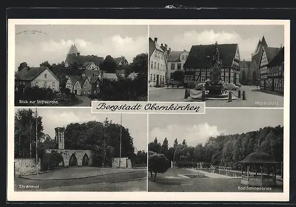 AK Obernkirchen, Ehrenmal, Marktplatz, Blick zur Stiftskirche