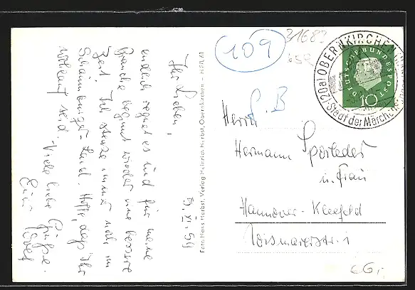 alte Ansichtskarte, gelaufen 1959, Stempelspur, guter Zustand