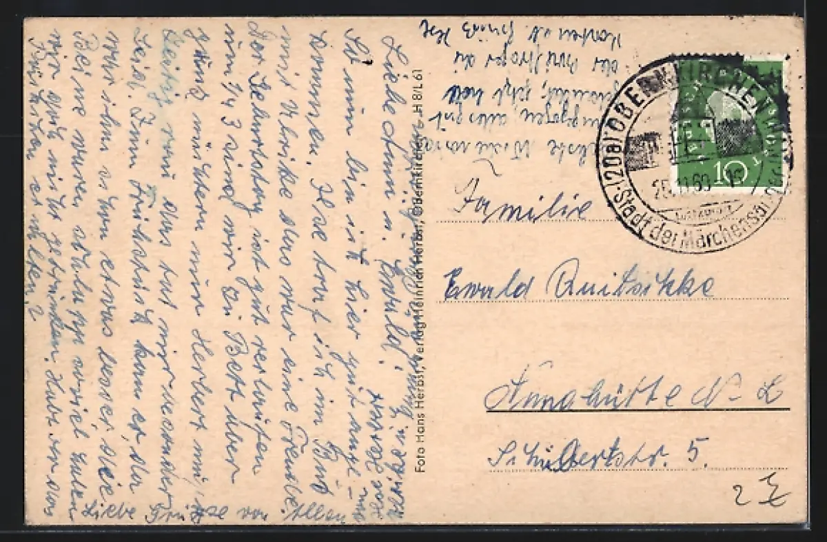 alte Ansichtskarte, gelaufen 1963, Eckknicke oben, Bugspur oben rechts, guter Zustand