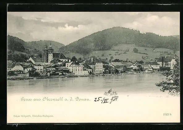 AK Obernzell a. d. Donau, Ortspanorama mit der Kirche im Bau