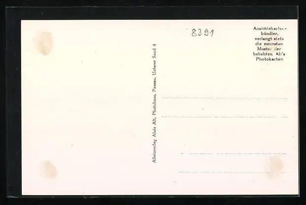 alte Ansichtskarte, ungelaufen, rückseitig Klebe- und Papierreste, guter Zustand