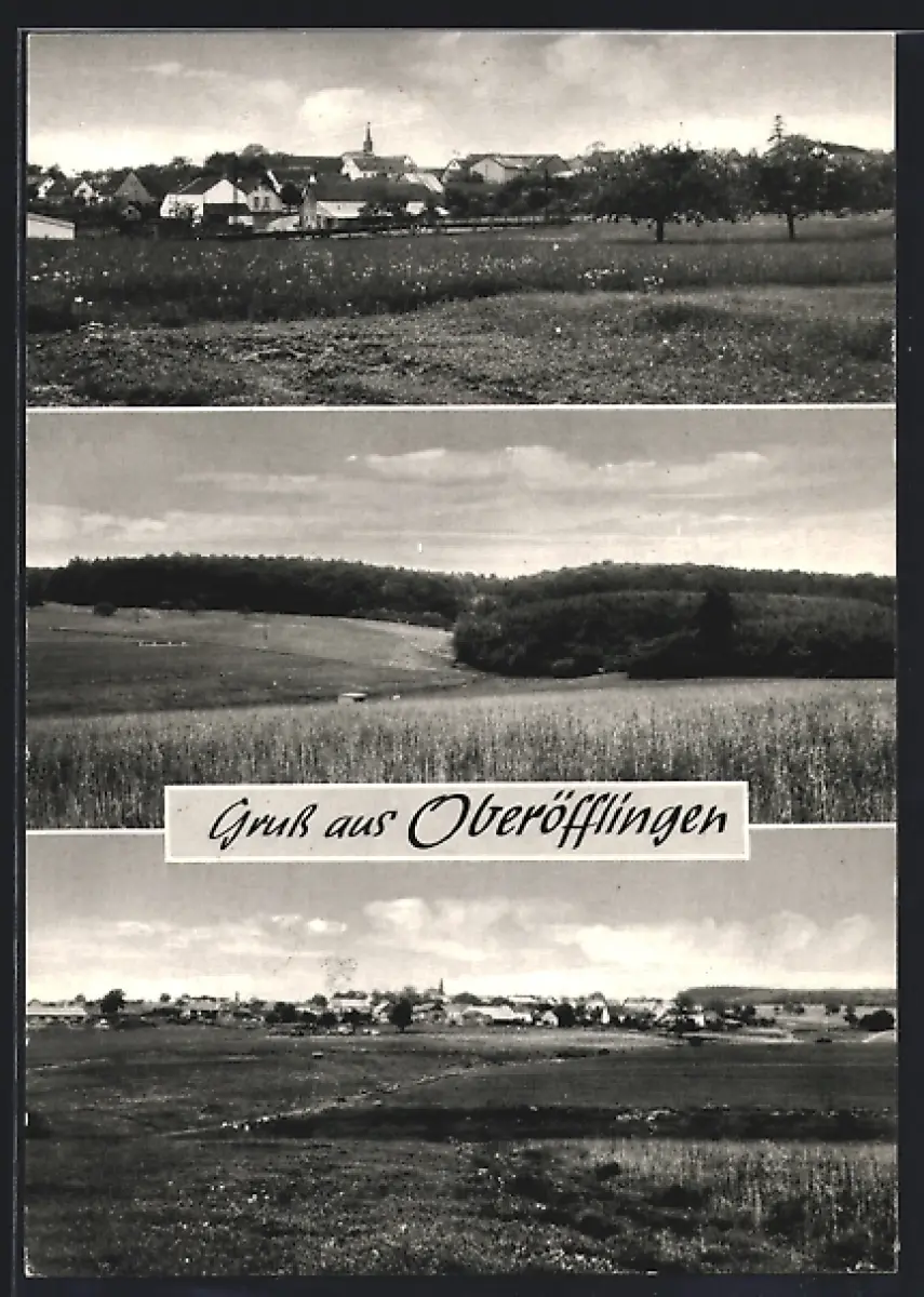 AK Oberöfflingen, Ortsansichten mit umliegenden Feldern