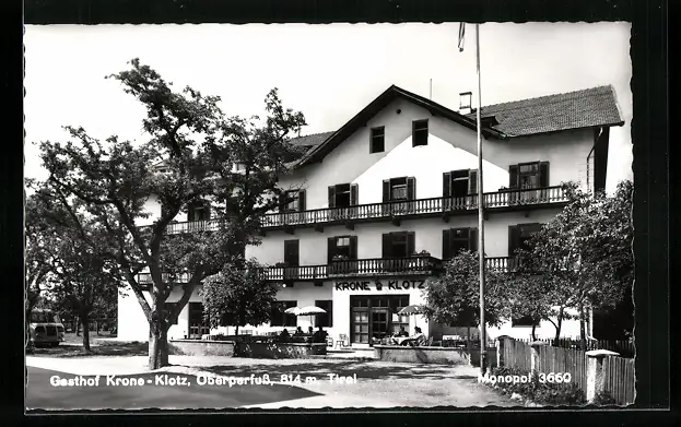 AK Oberperfuss, Gasthof Krone-Klotz mit Terrasse