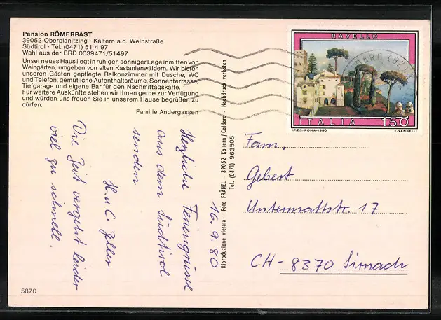 AK Oberplanitzing bei Kaltern, vor der Pension Römerrast Cafe
