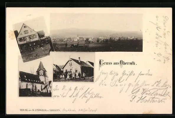 AK Oberroth, Geschäft, Kirche, Totalansicht