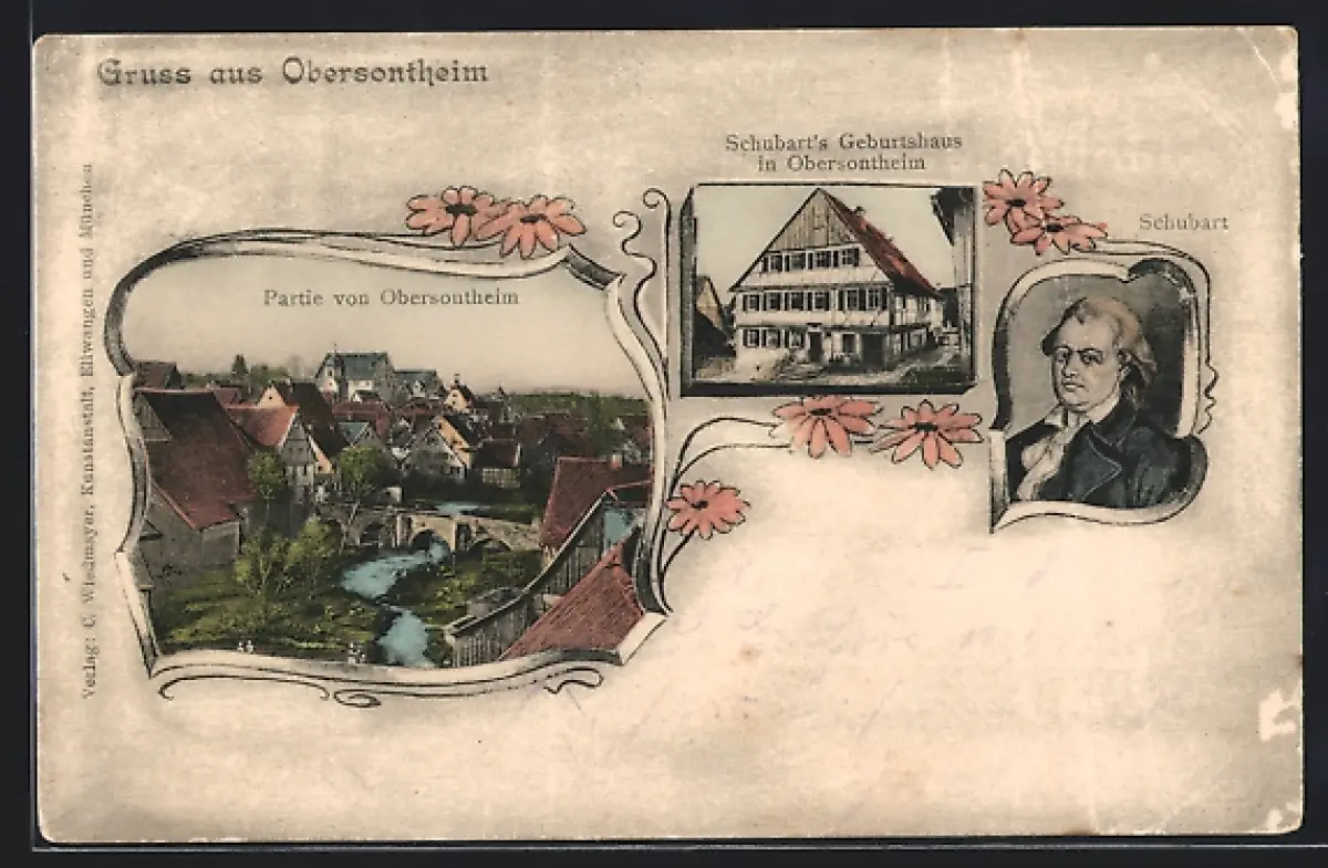 AK Obersontheim, Partie von Obersontheim, Schubarts Geburtshaus