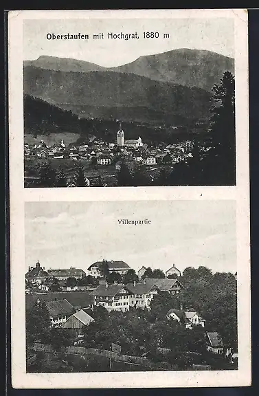 AK Oberstaufen, Teilansicht mit Hochgrat, Villenpartie