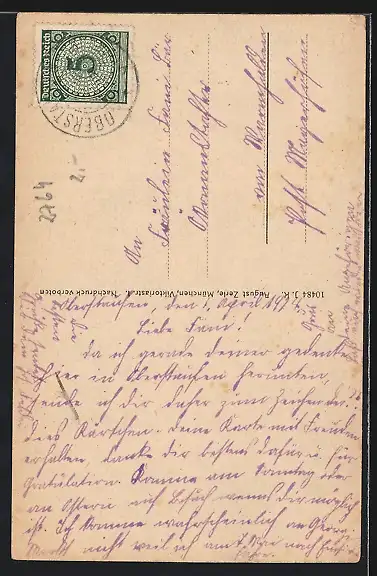 gelaufen 1924, Eckknicke re. oben u. li., guter Zustand