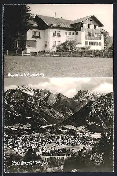 AK Oberstdorf /Allgäu, Blick auf den Ort mit Kurheim Ettensberg