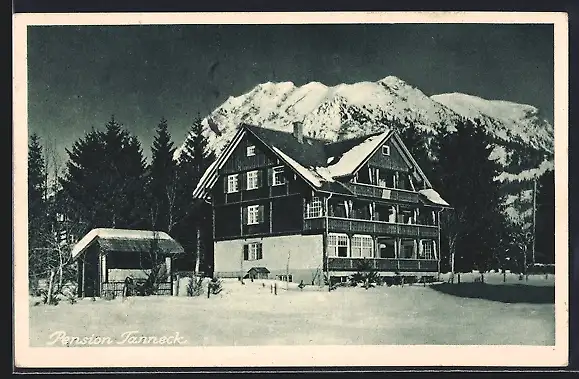 AK Oberstdorf, Ansicht der Pension Tanneck im Winter