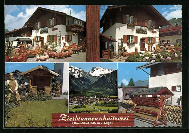 AK Oberstdorf, Zierbrunnenschnitzerei Thaumiller, Walserstrasse 28