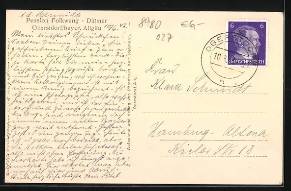 AK Oberstdorf / bayer. Allgäu, Pension Folkwang-Dittmar