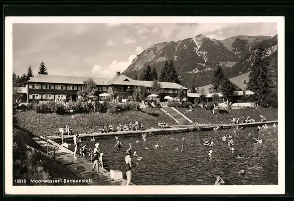AK Oberstdorf im bayr. Allgäu, Badegäste in der Moorwasser Badeanstalt