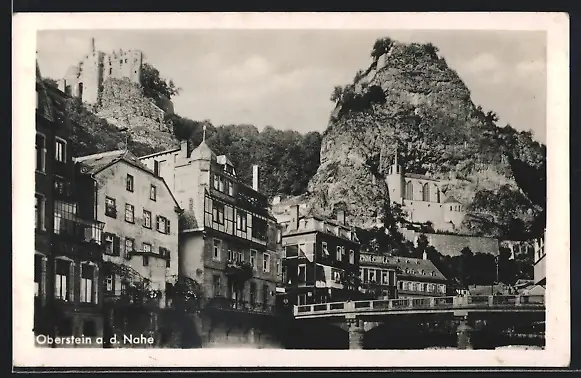 AK Oberstein /Nahe, Ortspartie mit Burgblick