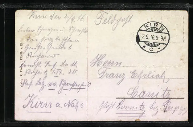 gelaufen 1916 als Feldpost, guter Zustand