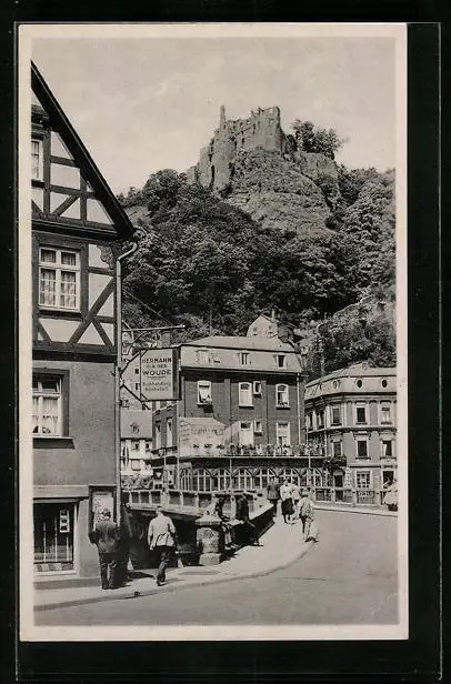 AK Oberstein a. d. Nahe, Ortspartie mit Burg