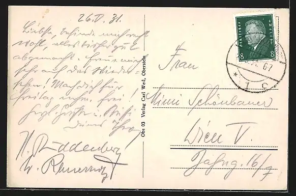 alte Ansichtskarte, gelaufen 1931, guter Zustand