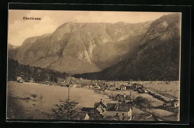 AK Obertraun, Ortspanorama aus der Vogelschau