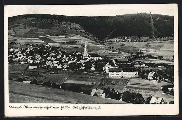 AK Oberwiesenthal am Fichtelberg, Teilansicht mit Kirche