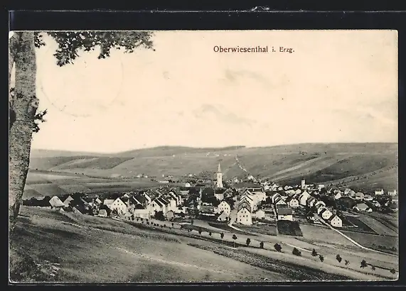 AK Oberwiesenthal i. Erzgeb., Teilansicht mit Kirche