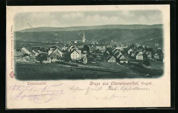 AK Oberwiesenthal i. Erzgeb., Totalansicht aus der Vogelschau