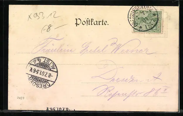alte Ansichtskarte, gelaufen 1901, Stempelspur, guter Zustand