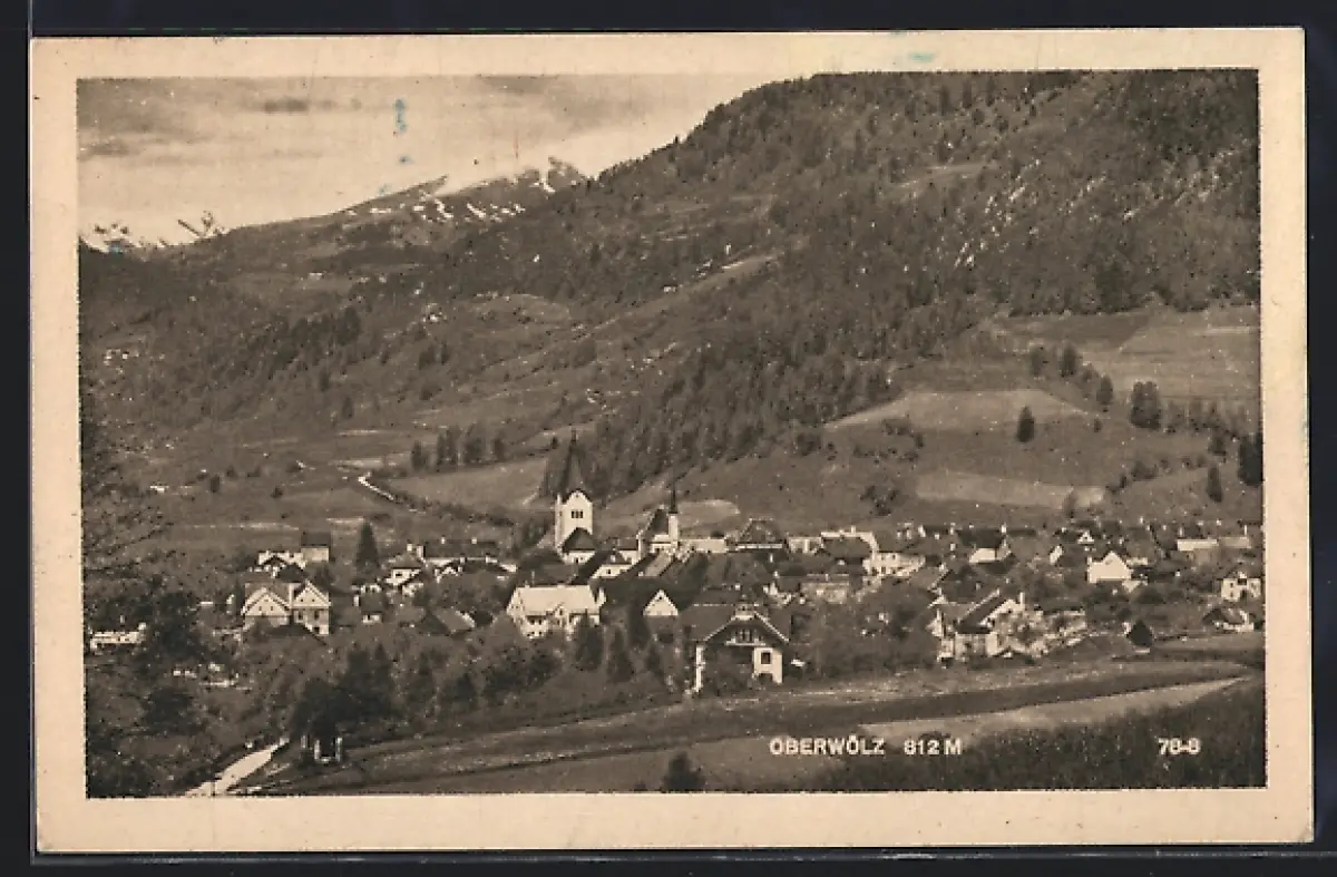 AK Oberwölz, Ortsansicht aus der Vogelschau