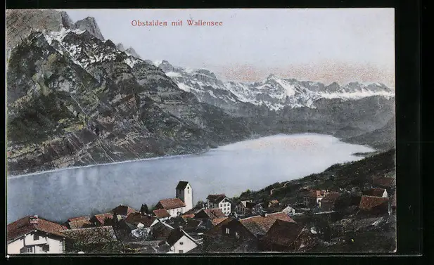 AK Obstalden, Panorama mit Bergen am Wallensee