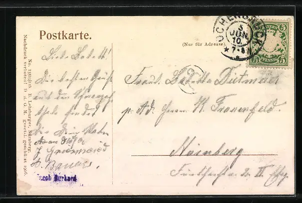 alte Ansichtskarte, gelaufen 1910, guter Zustand
