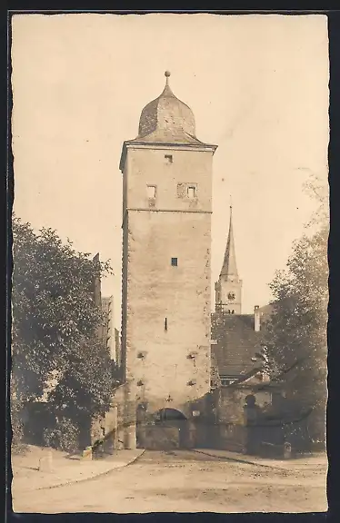 AK Ochsenfurt / Main, Strassenpartie mit Turm