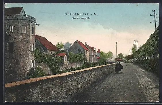AK Ochsenfurt a. M., Stadtmauerpartie mit Strasse