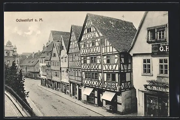 AK Ochsenfurt a. M., Strassenpartie mit Geschäften