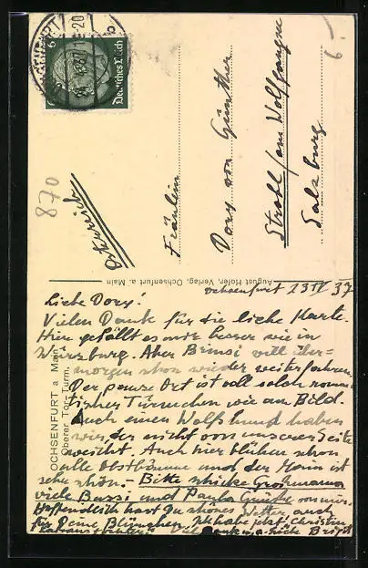 alte Ansichtskarte, gelaufen 1937, guter Zustand