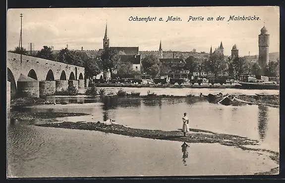 AK Ochsenfurt a. Main, Partie an der Mainbrücke