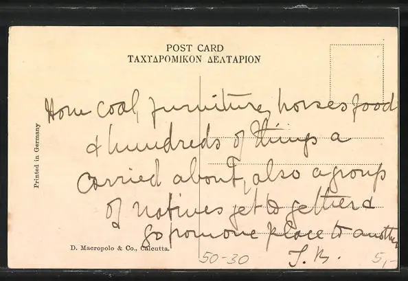 Personenbezogene Daten auf der Rückseite der Karte wurden durch blauen Textmarker unkenntlich gemacht. Die blauen Stellen sind auf die Vorderseite durchgeweicht und wirken sich negativ auf das Postkartenfoto aus