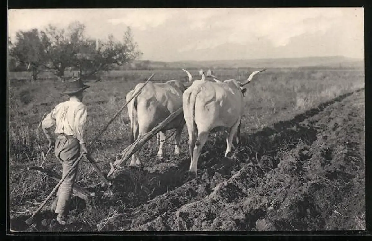 AK Ochsengespann auf dem Feld