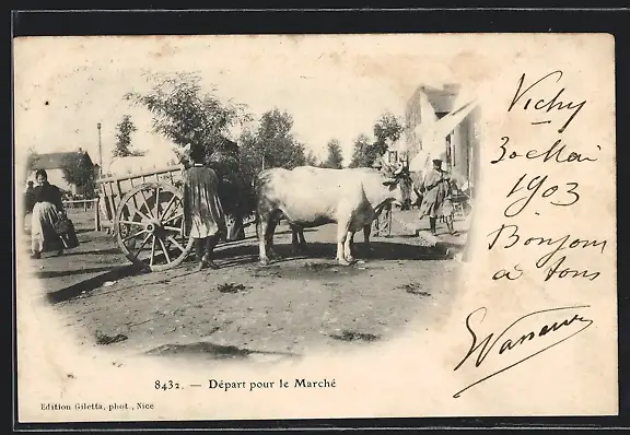 AK Ochsengespann beim Aufbruch zum Markt