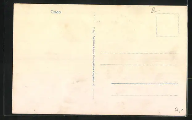 Personenbezogene Daten auf der Rückseite der Karte wurden durch blauen Textmarker unkenntlich gemacht. Die blauen Stellen sind auf die Vorderseite durchgeweicht und wirken sich negativ auf das Postkartenfoto aus