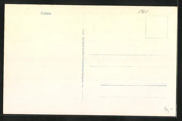 Personenbezogene Daten auf der Rückseite der Karte wurden durch blauen Textmarker unkenntlich gemacht. Die blauen Stellen sind auf die Vorderseite durchgeweicht und wirken sich negativ auf das Postkartenfoto aus