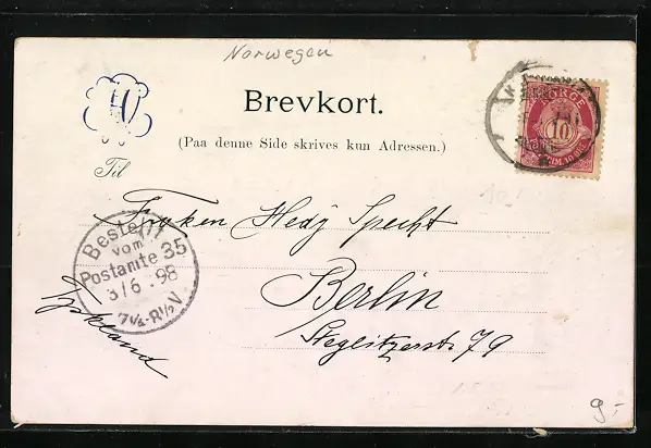 gelaufen 1898, minimaler Einriss li. oben, guter Zustand