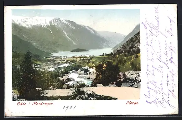 AK Odde i Hardanger, Panoramablick auf die Bucht