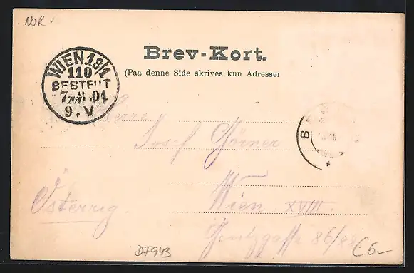 gelaufen 1901, Briefmarke entfernt, rückseitig Oberflächenschaden, Eckknicke links u. rechts, guter Zustand