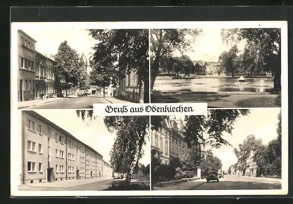 AK Odenkirchen, Stadtpark mit Teich, Strassenpartie mit Blick auf Kirchturm