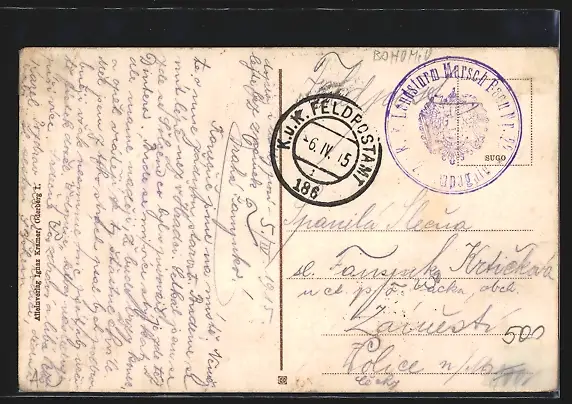 alte Ansichtskarte, gelaufen 1915, Stempelspur, Eckknick li. unten, rückseitig Klebe- und Papierreste, guter Zustand