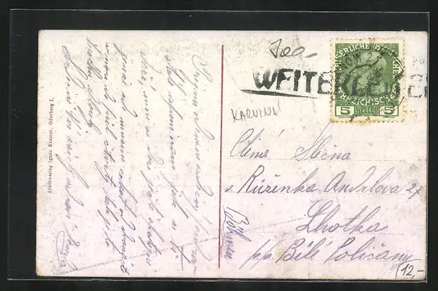 alte Ansichtskarte, gelaufen, minimaler Einriss li. oben, Stempelspur, Eckknicke li. unten, guter Zustand